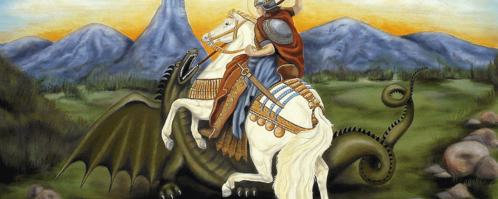 Jorge vem de lá da Capadócia Montado em seu cavaloNa mão a sua lança...